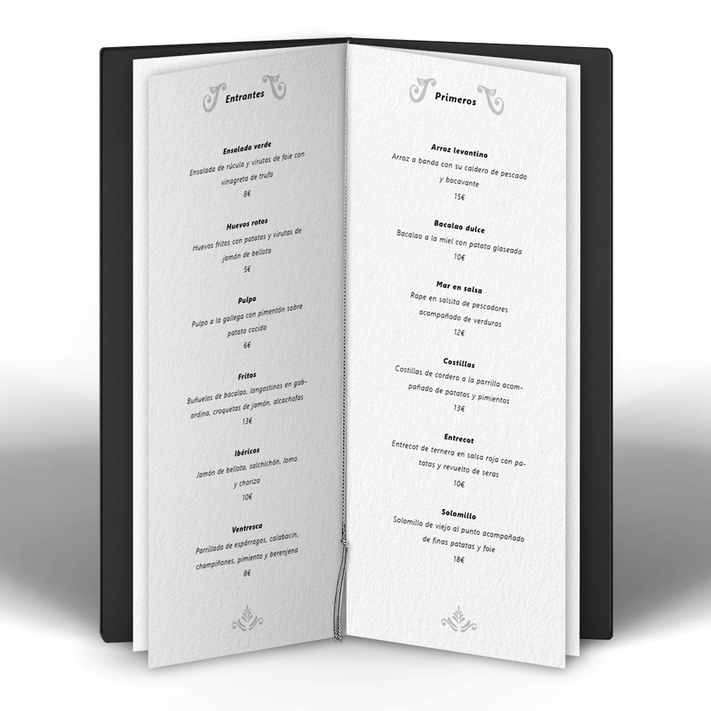 Para tus menús amplios, Menú Tríptico te permite sintetizar tus ideas y que siempre estén delante de tus clientes